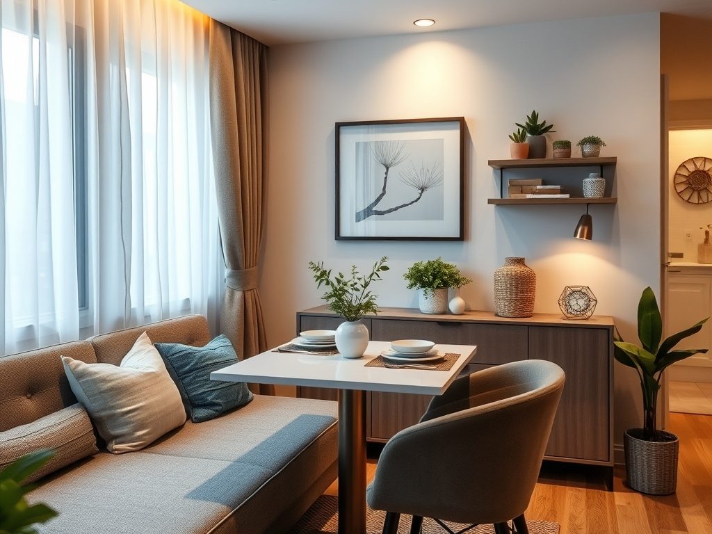 Wybierz stół o odpowiednim kształcie i funkcjonalności, aby maksymalnie wykorzystać dostępną przestrzeń w małym salonie z jadalnią. Zmierz przestrzeń, uwzględniając około 70-80 cm wokół stołu na komfortowe odsuwanie i przechodzenie. Postaw stół przy ścianie, aby umożliwić swobodne poruszanie się i zachować przestrzeń komunikacyjną.