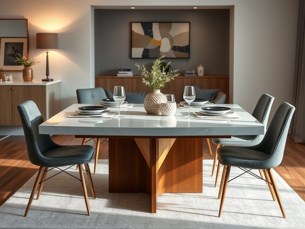 | Stół kwadratowy | Kompaktowość, możliwość ustawienia przy ścianie lub w rogu. | Sprawdza się w mniejszych przestrzeniach, zarówno na co dzień, jak i przy okazjach. |