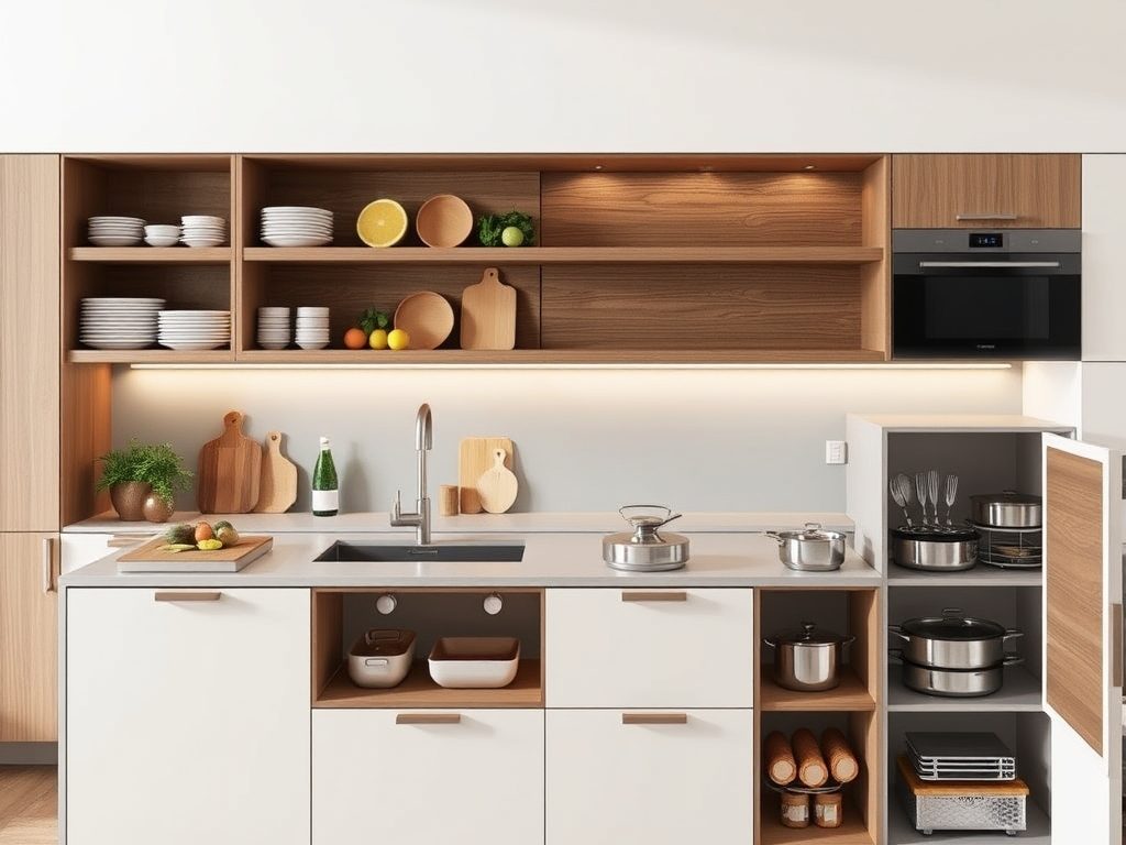 | Strefa przechowywania | Ustaw miejsce na zastawę, sztućce i akcesoria w dolnych i górnych szafkach, co ułatwi ich znalezienie podczas gotowania. |